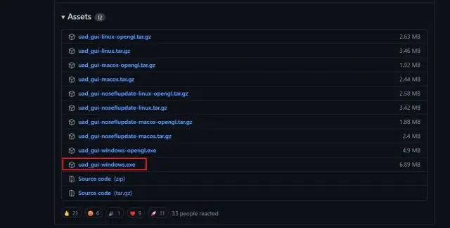 1. First, download the Universal Android Debloater (UAD) from here. Click on “Assets” and download the EXE file for Windows. If you are on macOS, download the .tar.gz file.