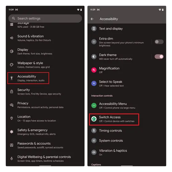 1. Open the Settings app and tap on ‘Accessibility’ to view accessibility settings. Under Interaction controls, tap on ‘Switch Access’.